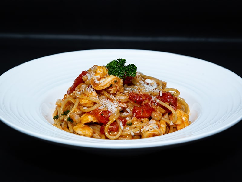 Classic tomato sauce, mozzerella cheese, chicken, sausage salami and oregano